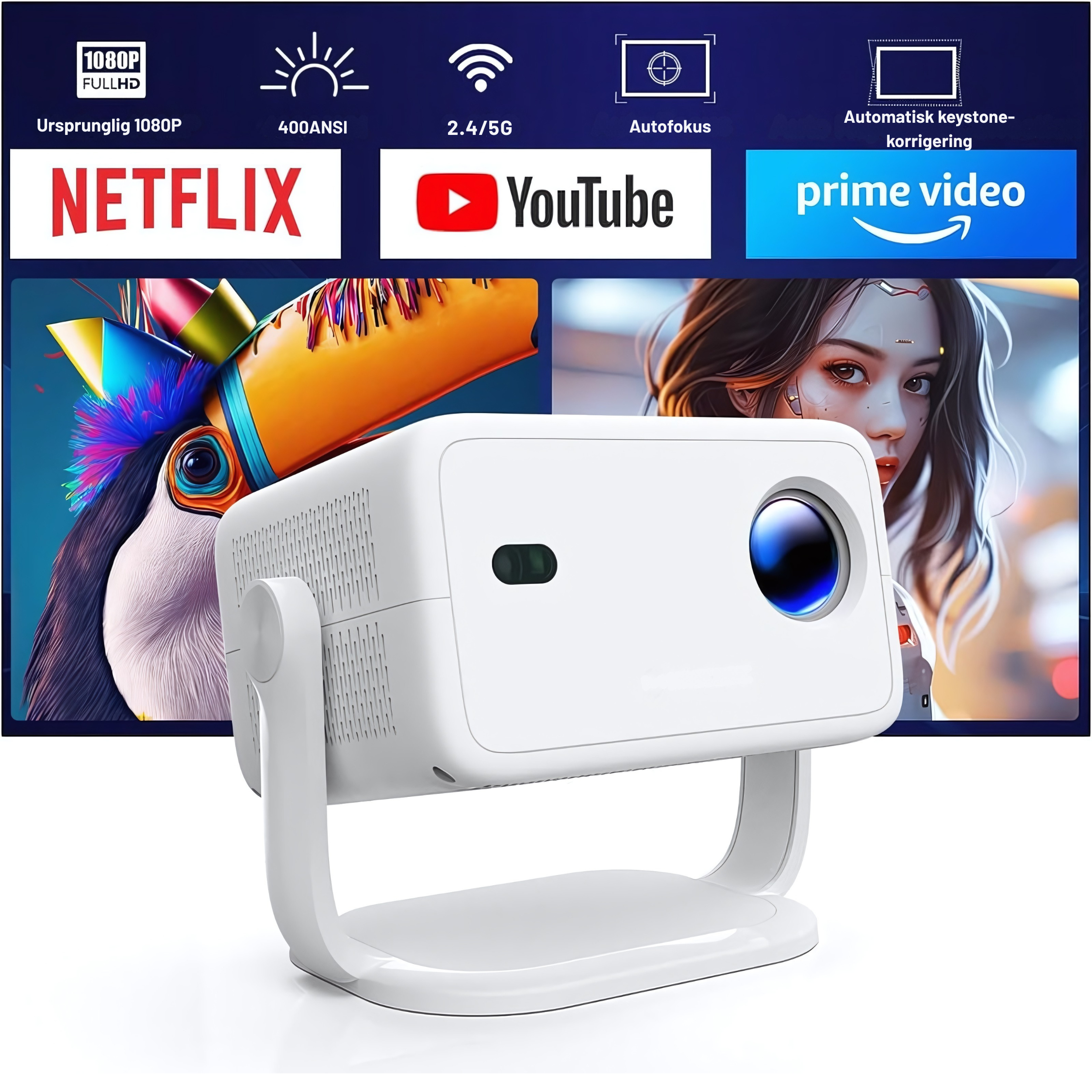 PixelNova Pro – Smart Bärbar Projektor med WiFi och Bluetooth – Uppgraderad Version 2025