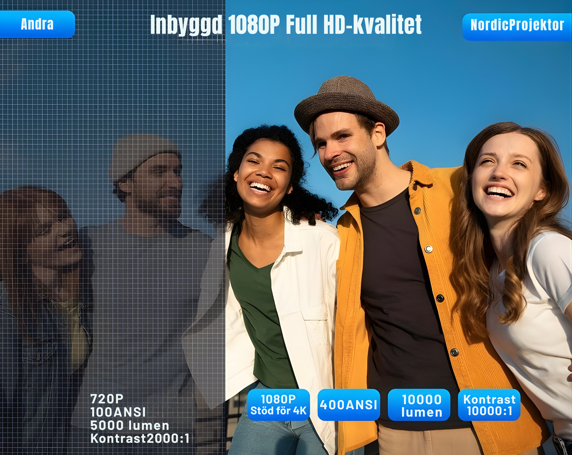 NordLux Pro – Smart Bärbar Projektor med WiFi och Bluetooth – Uppgraderad Version 2025