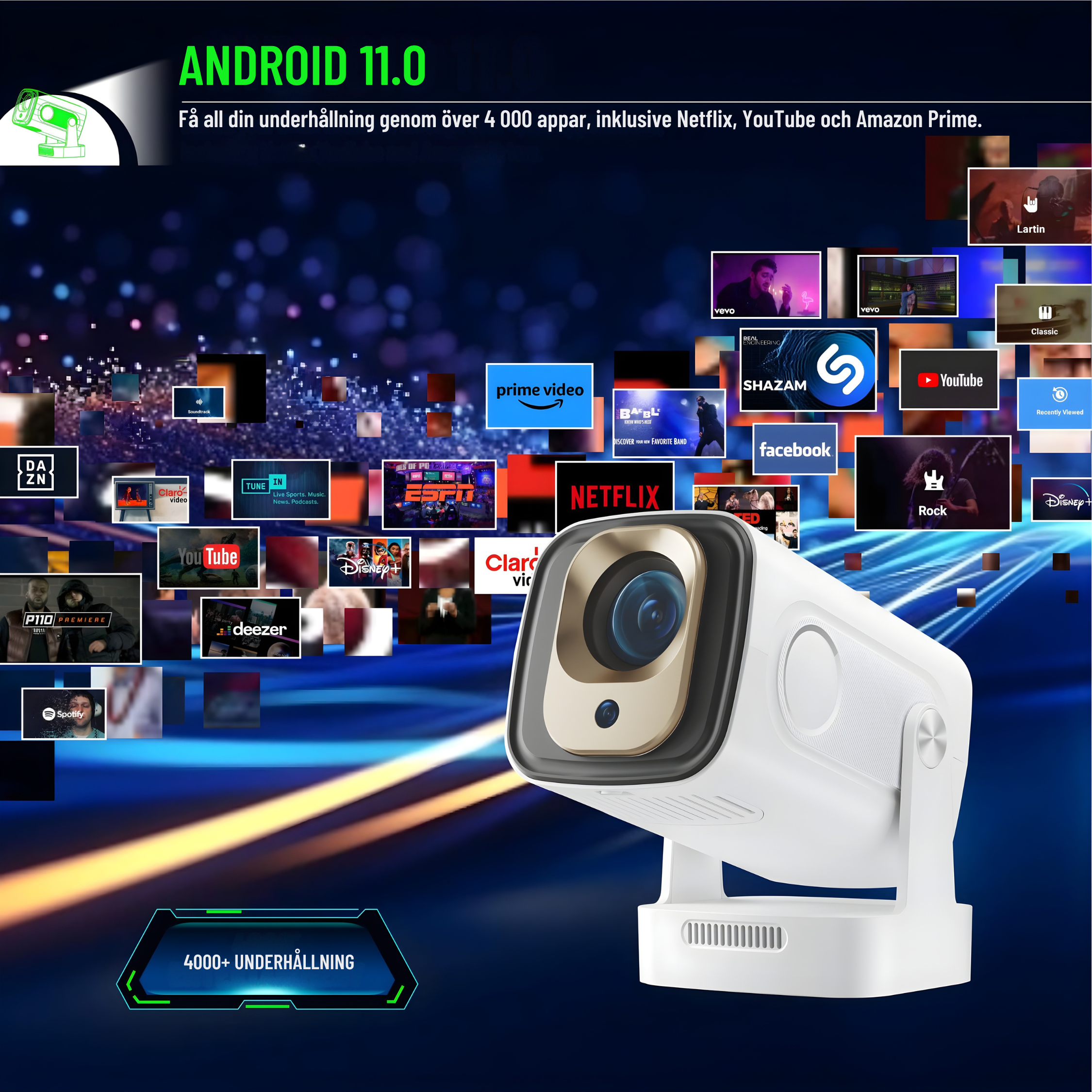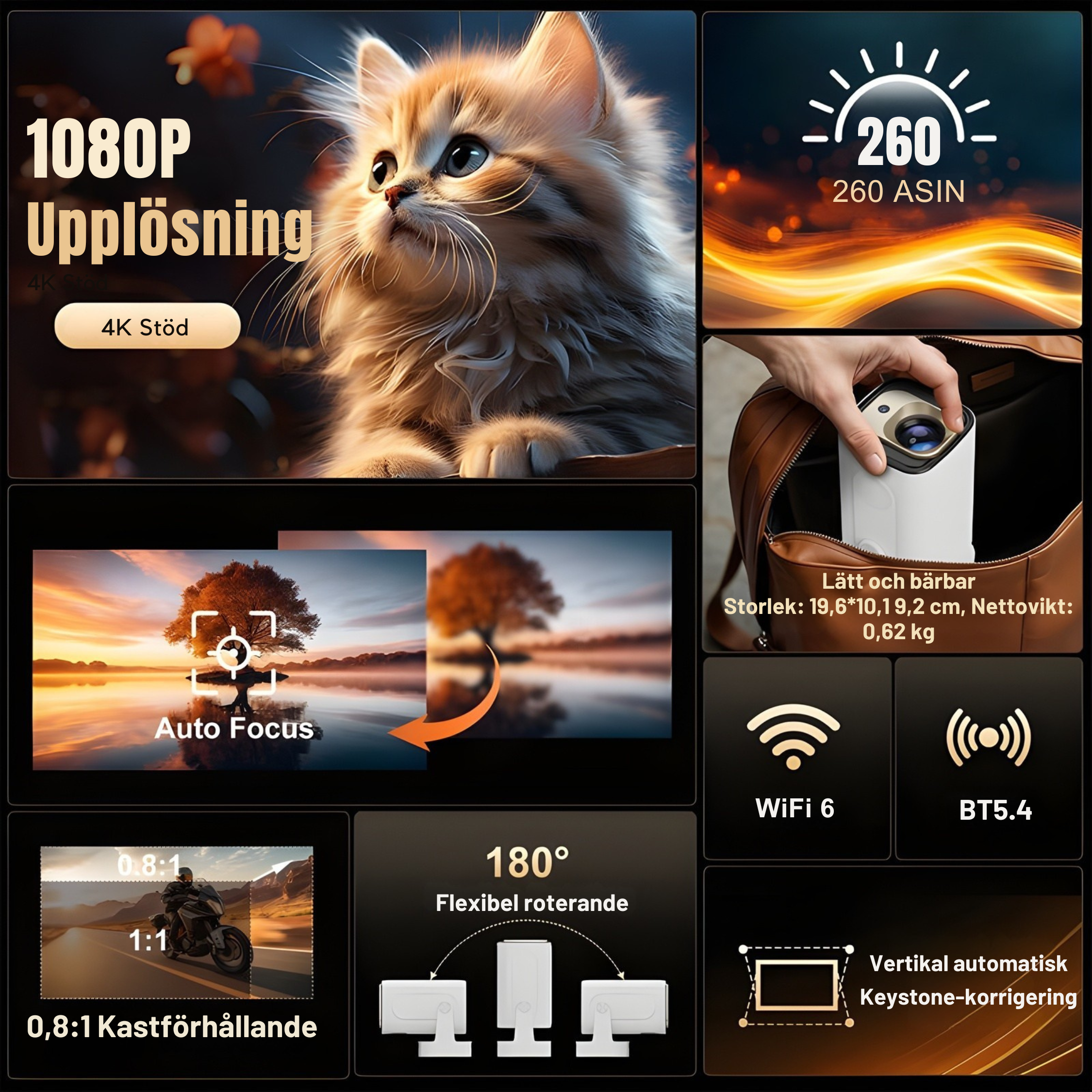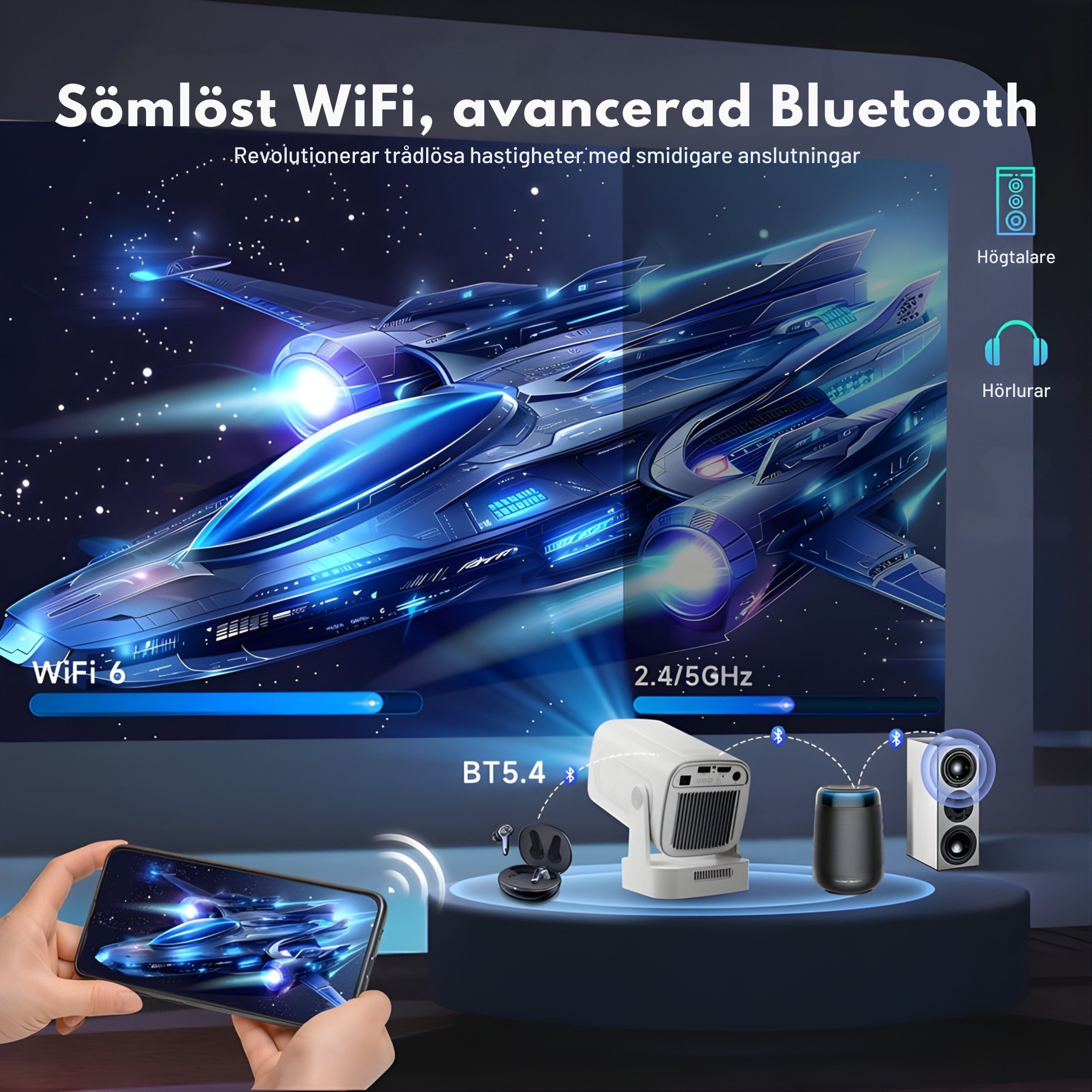 NordLux Pro – Smart Bärbar Projektor med WiFi och Bluetooth – Uppgraderad Version 2025