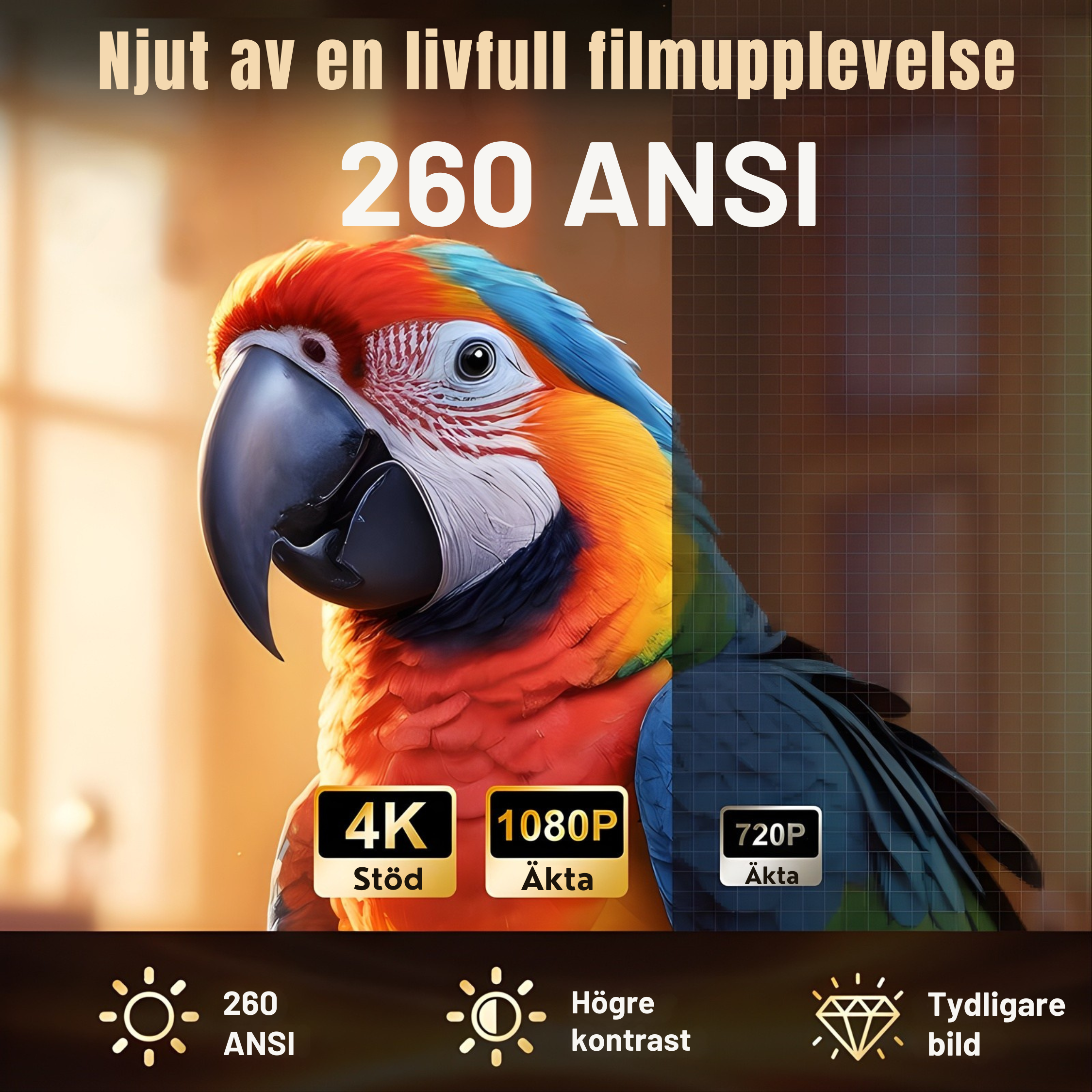 Nativ upplösning: 1080P (1920 × 1080) med stöd för 4K
