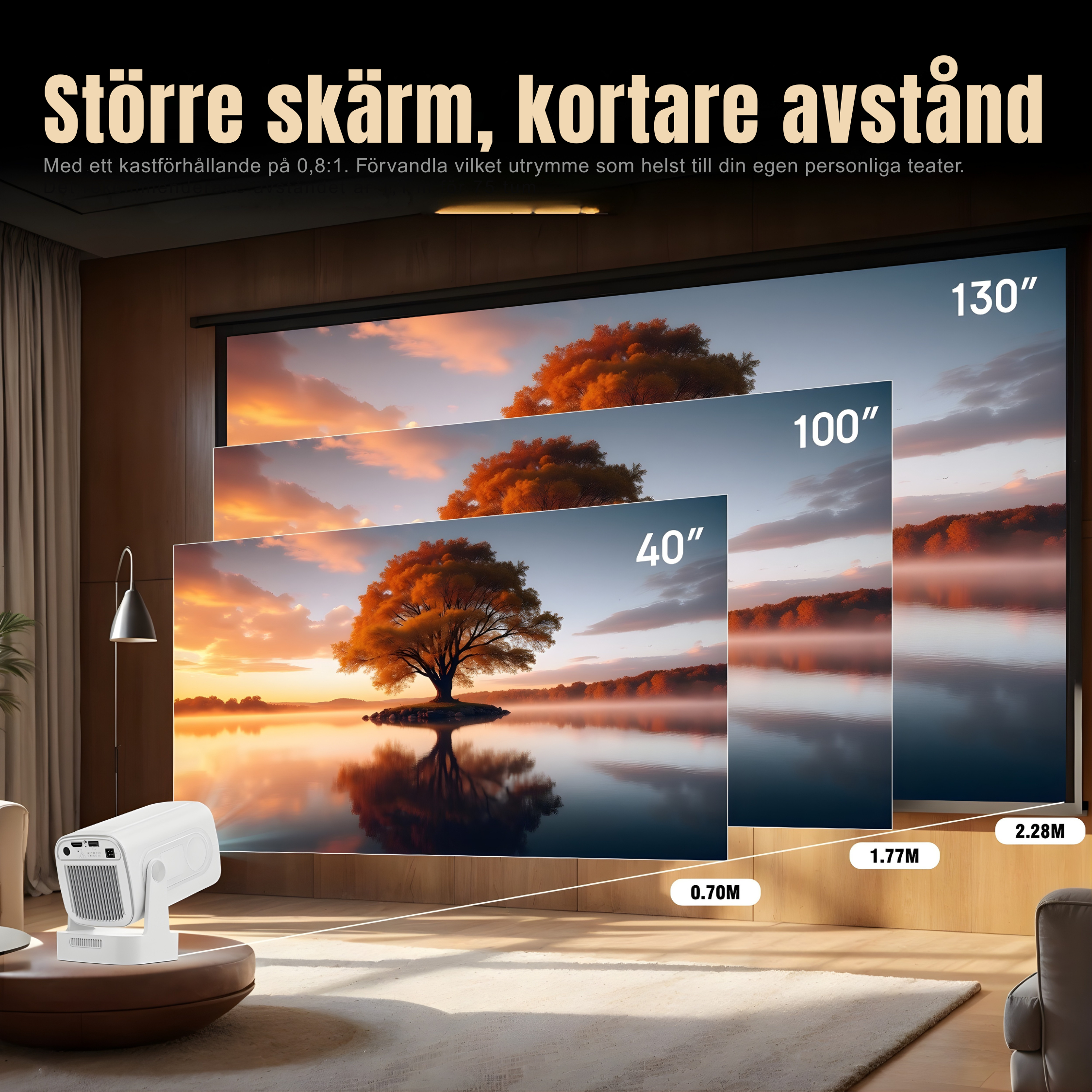 Projektionsstorlek: 40–130 tum