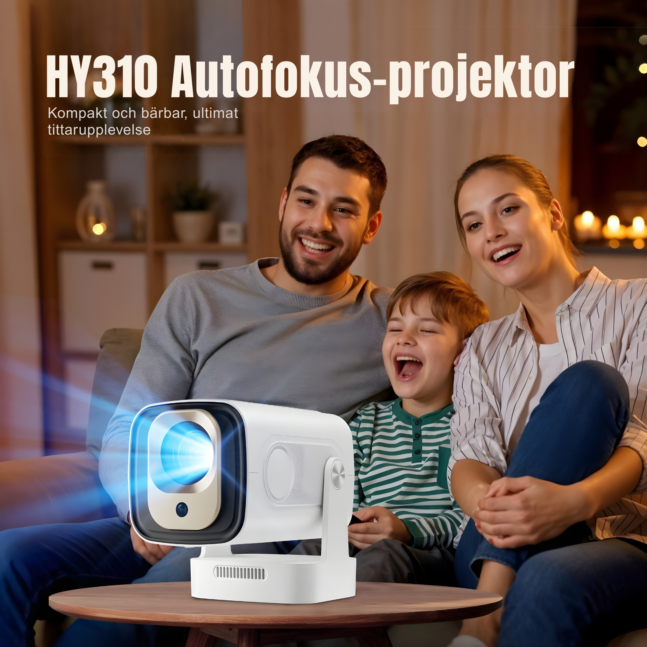 Våra projektorer är plug-and-play. Du behöver bara koppla in ström. Alla modeller har inbyggd WiFi och appar, så du kan streama direkt utan extra utrustning